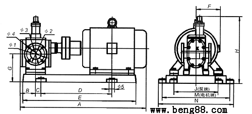 YCB型齒輪泵外形及安裝尺寸的性能參數(shù),是在介質(zhì)粘度4×10-3m2/s(40cSt)時確定的。YCB型齒輪泵外形及安裝尺寸性能參數(shù)表中給出的參數(shù)值適用于介質(zhì)粘度1×10-5~8×10-5m2/s(10~80cSt)范圍內(nèi),超出這個范圍則根據(jù)用戶提出的性能參數(shù)要求另行確定。